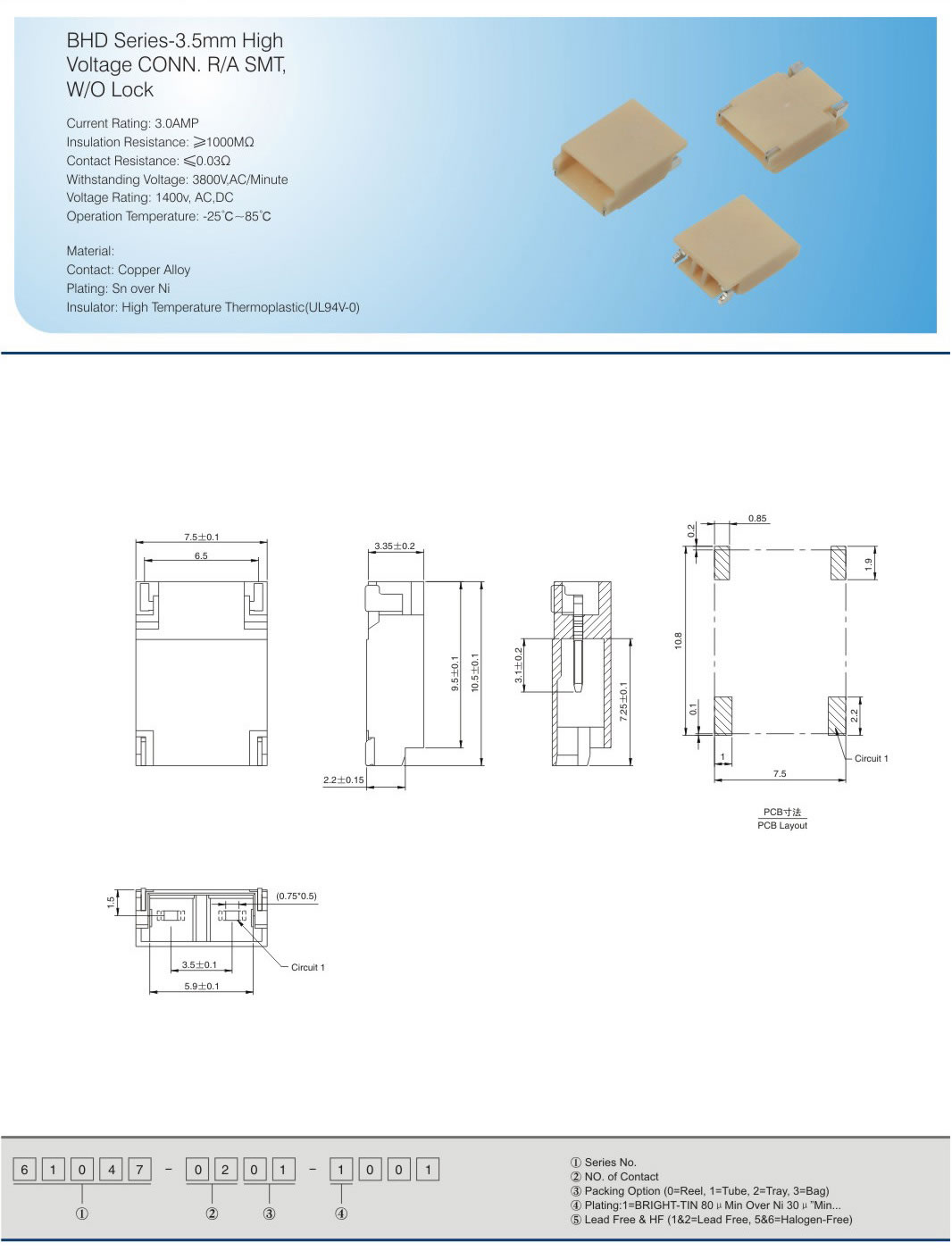 Insulator: High Temperature Thermoplastic(UL94v-0)