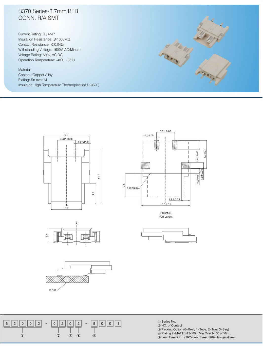 Insulator:High Temperature Thermoplastic(UL94V-0)