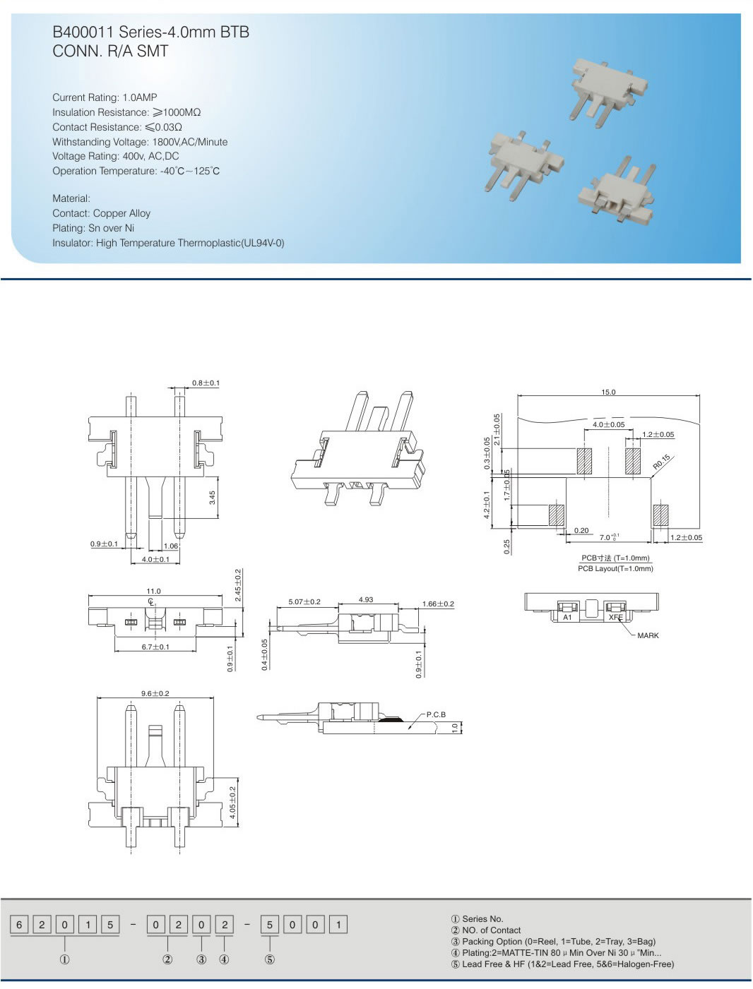 Insulator:High Temperature Thermoplastic(UL94V-O)