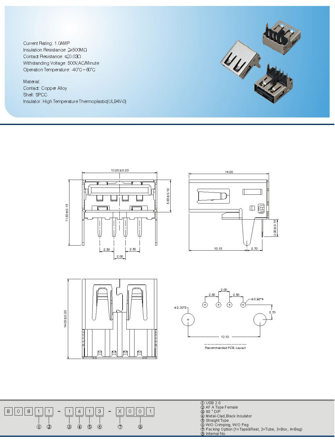USB-AF-90°-DIP-FE-B-Pata recta sin borde enrollado