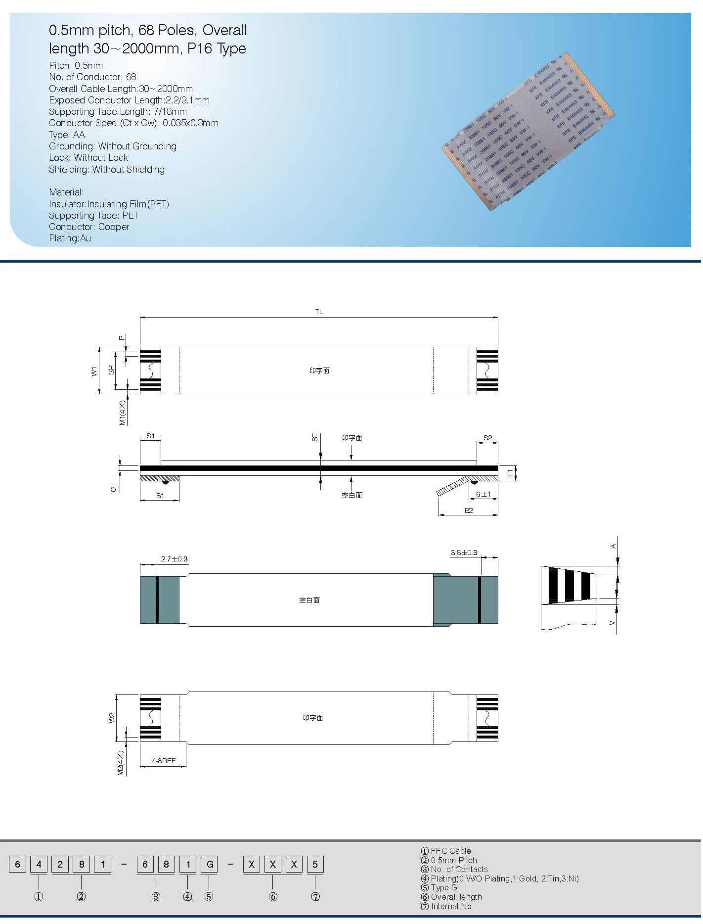 0.5mm pitch, 68 Poles, Overall