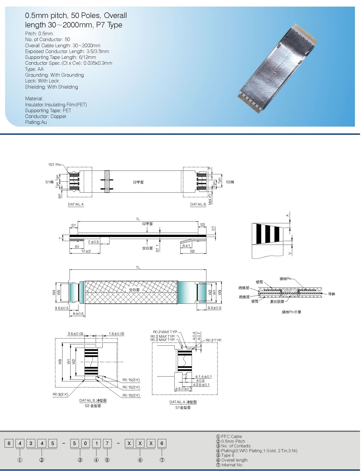 0.5mm pitch, 50 Poles, Overall