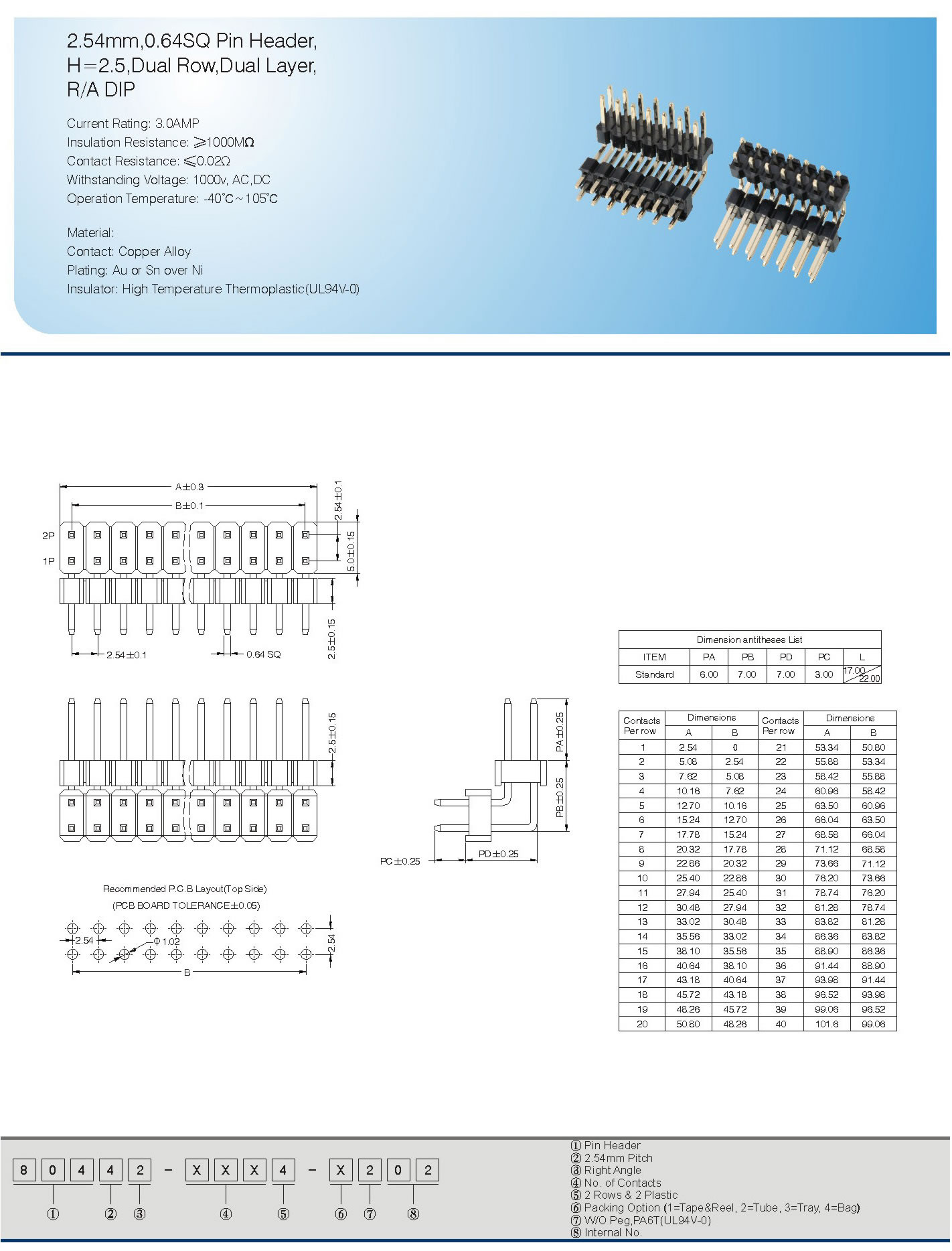 2.54mm,0.64SQ Pin Header,