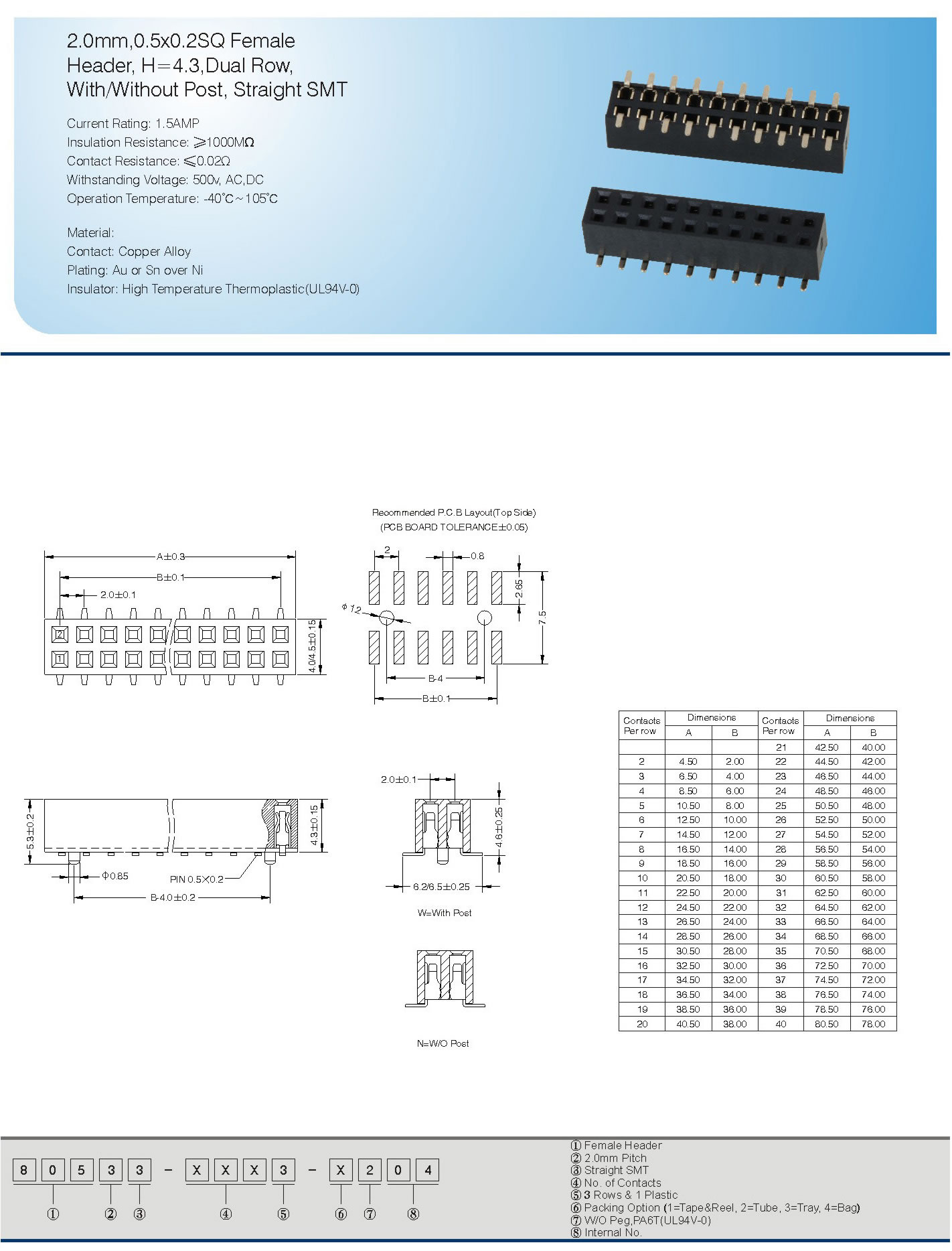 Espaciado: 2.0mm
